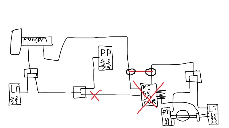 Trzeba by było całkiem odkręcić przewód powrotny do przedniej sekcji, zaślepić gniazdo po nim w przednim trójniku, zamienić z tyłu korektor na trójnik i po kłopocie.