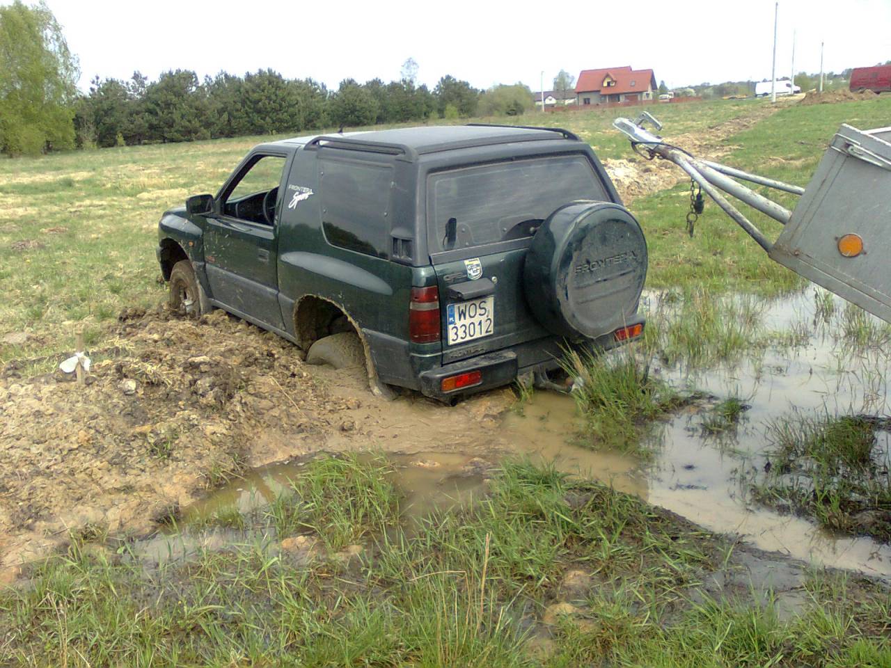 Przyjechał kolega vitarą, kinetyk i buta. Podskakiwał jak żaba, a frotka ani drgnie. Panowie z wodociągów zaproponowali, że jak chcę to mi pomogą. Podjechali CAT-em i byłem wolny. Koszt: panowie dostali 2,5 l "ducha puszczy".