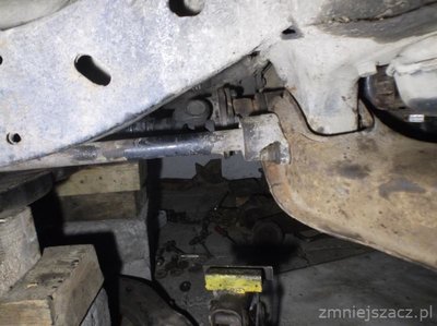 Do 2cm wystarczy dodać podkładek i dać dłuższe śruby mocujące. Żeby obniżyć więcej to już trzeba przeprofilować blachy mocujące, żeby się mijały z drążkiem kierowniczym oraz przerobić belkę łączącą dolne wahacze.Chwilowo most wisi na tylnych śrubach musi być opuszczony o 18mm by grucha minęła wysprzeglnik o około 12-15mm (grubość palucha wskazującego)