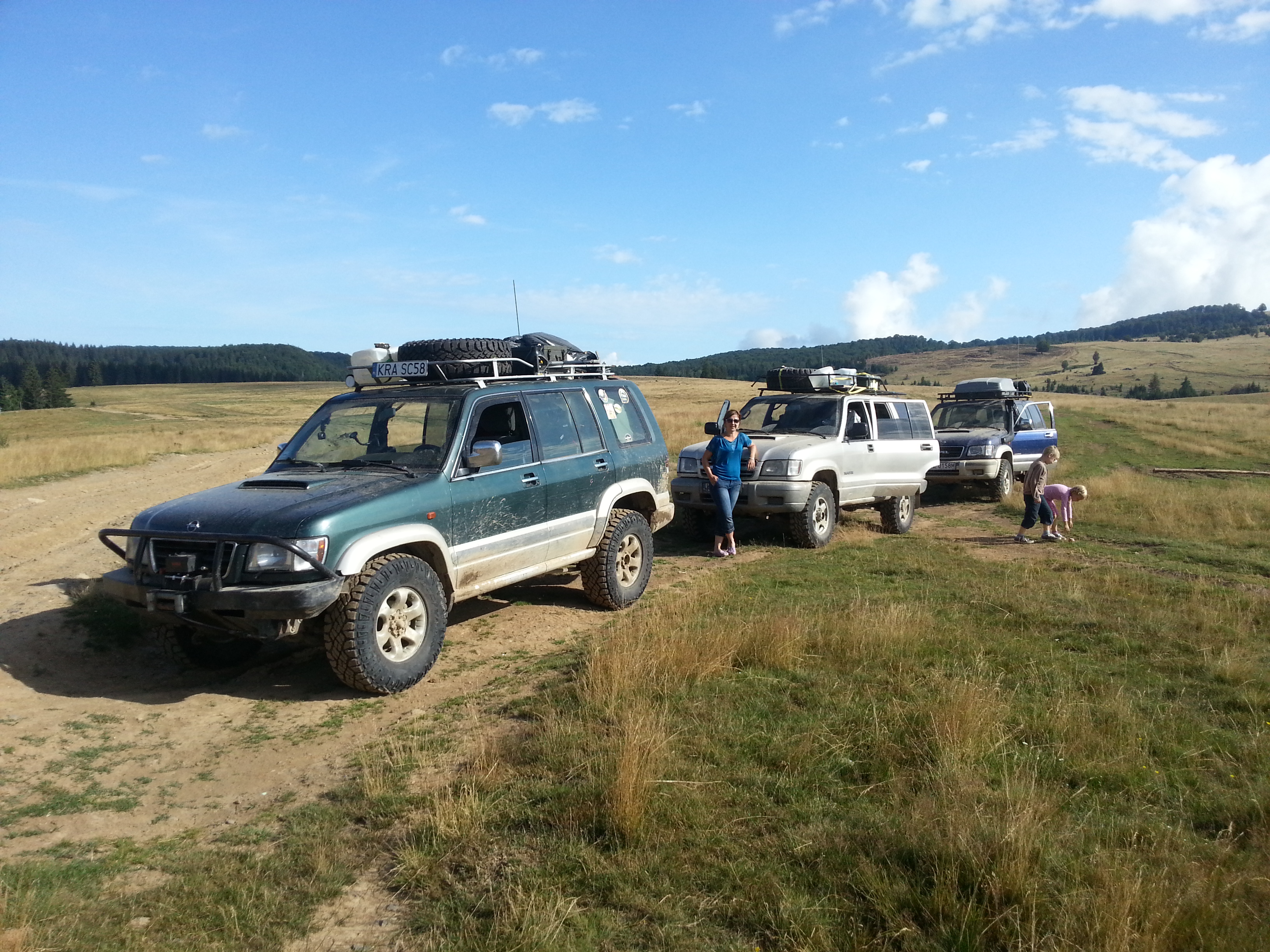 Najpierw wjechaliśmy w Maramuresz, zwiedziliśmy górki, klif nad Sapantą i sam cmentarz. Potem pojechaliśmy na Bukowinę zobaczyć malowany monastyr i polską wieś Nowy Sołoniec. Stamtąd pojechaliśmy do parku Calimani, ale pogoda nam nie dopisała i widzieliśmy tylko chmury. W związku z tym że w 3 ekipy bardzo sprawnie się poruszaliśmy po drodze wstąpiliśmy do Sigishoary. Zrobiliśmy nie lada sensację ryjąc się na sam środek starówkowego ryneczku aby rozpakować samochody do pensjonatu. Następnego dnia obejrzeliśmy zamki Rasnov i Bran, oraz spróbowaliśmy lokalnej palinki. Kolejny dzień to trasa Transfagaraska - widok dosłownie urywający dupę. W tym roku były na niej korki :shock: . Pierwszy raz w życiu stałem w korku i się cieszyłem. Potem dwa dni górami i pięknymi widokowo połoninami kierowaliśmy się w stronę Transalpiny, gdzie nad jeziorem Vidra zrobiliśmy sobie kolejny nocleg. Czas było wracać, więc po drodze zrobiliśmy ostatni biwak w górach i następnego dnia przy okazji zwiedziliśmy Jaskinię Niedźwiedzią w Chiscau. Zaraz po tym zakup palinki i piwa na zapas i 650km do domu. Mimo tego że zaskoczył mnie nie co byt biwakowy z moją załogą na pokładzie jestem bardzo szczęśliwy że udało nam się zaliczyć taką przygodę. Mamy w fanklubie najmłodszego podróżnika. Amelka wyjechała w trasę mają równe 1,5 roku :)