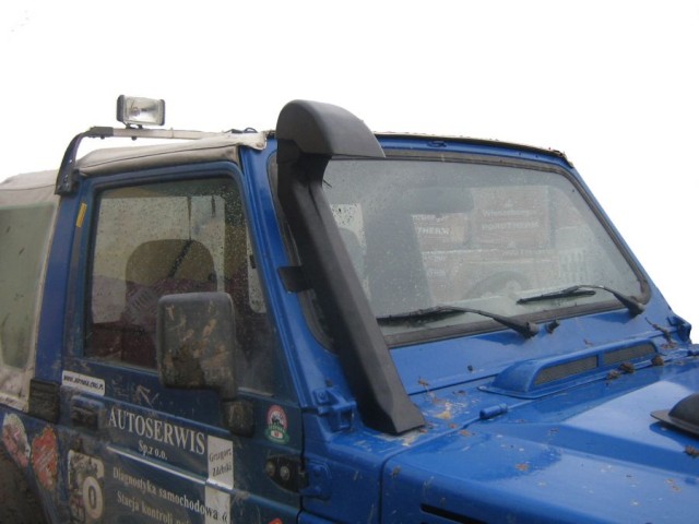 Za to spod maski dobiegło wyraźne syczenie. Otworzyłem ją i się okazało, że to z obudowy filtra. Po jej otwarciu wyszło na jaw, że zassało obwódkę wkładu (tę gumową) i już nie przylegała szczelnie do obudowy. Stawiam, że to sprawka tych liści, przez które wytworzyło się takie podciśnienie w dolocie. Swoją drogą nie przypuszczałem, że silnik jest zdolny sobie w ten sposób poradzić z brakiem tlenu. Dobrze, że potem w jeziorku na poligonie nie pojechałem w lewo, bo bym filtr a może i cały silnik utopił