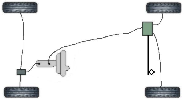 Z pompy wychodzą dwa sztywne przewody, pierwszy wchodzi na trójnik zaraz pod pompą, i wychodzą z niego dwa przewody, które idą tylko na przednie koła. Drugi przewód idzie na tył, do korektora siły hamowania i wychodzą z niego dwa przewody (po jednym na każde tylne koło) i cięgno tłoczka połączone do mostu (to czarne na rysunku) i na tym koniec układu hamowania :shock: