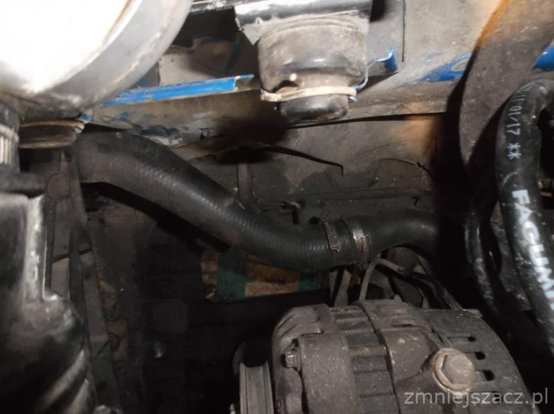 chłodnica lekko pochylona ku silnikowi by od maski zrobić więcej miejsca