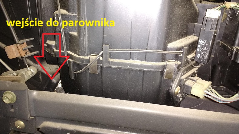 Nie widzisz wtyczki na obudowie parownika? Bardziej na lewo po zdjęciu schowka.