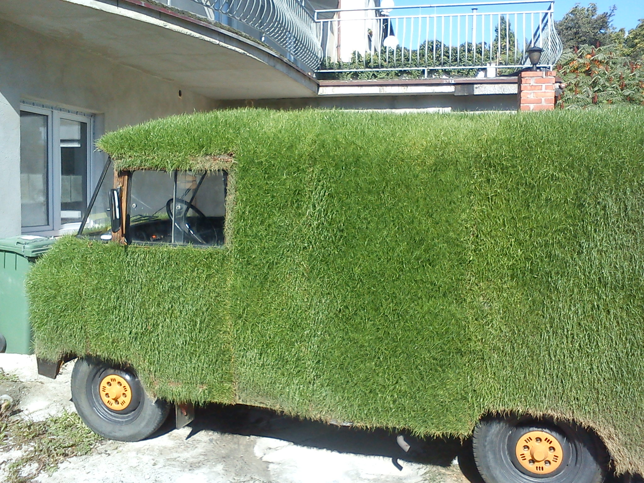 stoi taki w krk koło Izy. trawa jest żywa.
