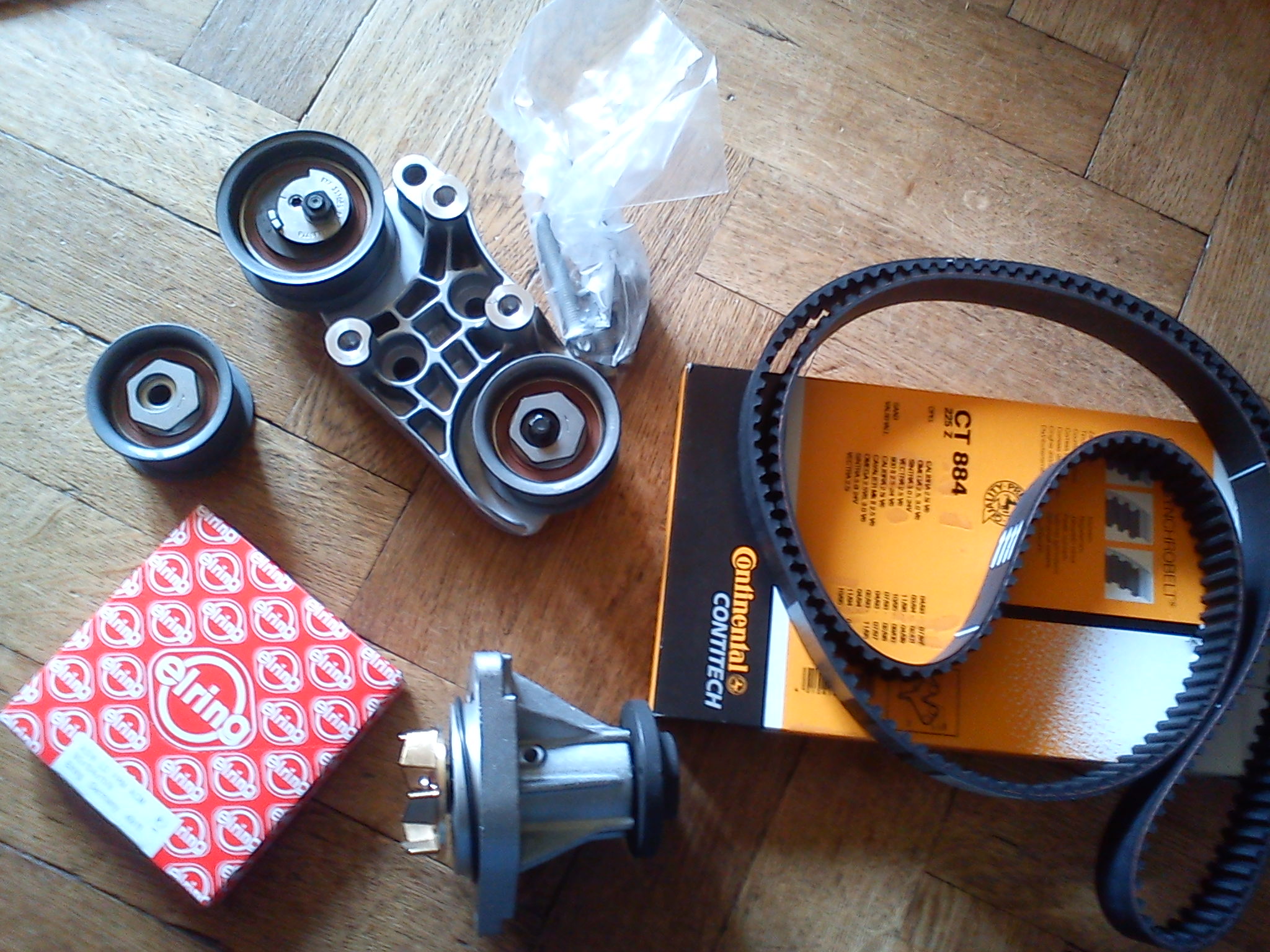 Rozrząd kompletny + pompa(która jest napędzana paskiem alternatora) i uszczelniacz wału tył.